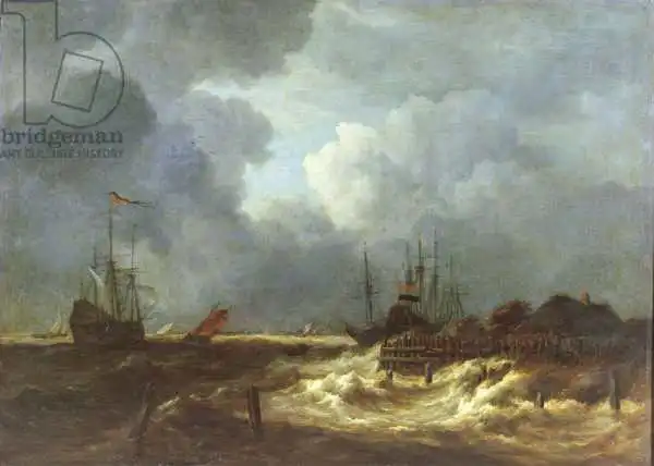 Jacob van Ruisdael (1629-1682) byl holandský mistr a krajinář ve zlatém věku baroka. Narodil se ve městě Haarlem. Studoval u svého otce a strýce a později prodával rámy. Jeho tvorbu hodně ovlivnili tehdejší malířští mistři. Ač byl jeho talent mimořádný, nebyly jeho obrazy ve své době pochopeny. Proto v roce 1676 začal studium lékařství v Amsterodamu. Ruisdael rád maloval lesní krajiny, v nichž si zakládá na nepřeberném množství detailů rostlin i stromů, hře světla a stínů a opravdovosti mraků (např. Krajina s peřejí). V jeho pohledech na města a stavby v krajině, jako např. Vodní mlýny, vidíme vliv Rembrandta.