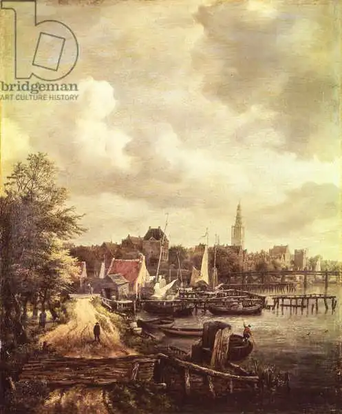 Jacob van Ruisdael (1629-1682) byl holandský mistr a krajinář ve zlatém věku baroka. Narodil se ve městě Haarlem. Studoval u svého otce a strýce a později prodával rámy. Jeho tvorbu hodně ovlivnili tehdejší malířští mistři. Ač byl jeho talent mimořádný, nebyly jeho obrazy ve své době pochopeny. Proto v roce 1676 začal studium lékařství v Amsterodamu. Ruisdael rád maloval lesní krajiny, v nichž si zakládá na nepřeberném množství detailů rostlin i stromů, hře světla a stínů a opravdovosti mraků (např. Krajina s peřejí). V jeho pohledech na města a stavby v krajině, jako např. Vodní mlýny, vidíme vliv Rembrandta.