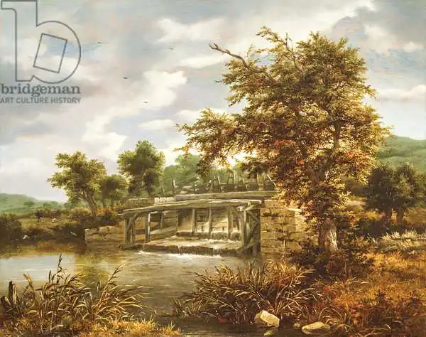 Jacob van Ruisdael (1629-1682) byl holandský mistr a krajinář ve zlatém věku baroka. Narodil se ve městě Haarlem. Studoval u svého otce a strýce a později prodával rámy. Jeho tvorbu hodně ovlivnili tehdejší malířští mistři. Ač byl jeho talent mimořádný, nebyly jeho obrazy ve své době pochopeny. Proto v roce 1676 začal studium lékařství v Amsterodamu. Ruisdael rád maloval lesní krajiny, v nichž si zakládá na nepřeberném množství detailů rostlin i stromů, hře světla a stínů a opravdovosti mraků (např. Krajina s peřejí). V jeho pohledech na města a stavby v krajině, jako např. Vodní mlýny, vidíme vliv Rembrandta.