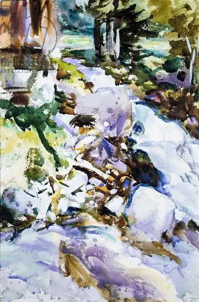 Sargent namaloval obraz Rushing Brook v roce 1904. Převládající barvy tohoto obrazu jsou do modra a jeho formát je na výšku. Rozměr originálu je 46.8x31.4. Umístěním originálu obrazu je Metropolitan Museum of Art, New York, USA. Reprodukci tohoto obrazu tiskneme na přání - můžete si zvolit rozměr i provedení reprodukce.