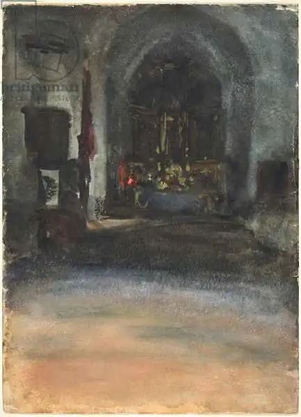 Sargent namaloval obraz Spanish Church Interior v roce 1880. Převládající barvy tohoto obrazu jsou do zelena a jeho formát je na výšku. Rozměr originálu je 36.7x26.6. Umístěním originálu obrazu je National Gallery of Art, Washington DC, USA. Reprodukci tohoto obrazu tiskneme na přání - můžete si zvolit rozměr i provedení reprodukce.