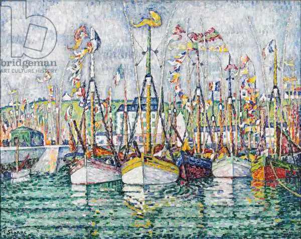 Signac namaloval obraz Blessing of the Tuna Fleet at Groix v roce 1923. Převládající barvy tohoto obrazu jsou pestrobarevné a jeho formát je na šířku. Rozměr originálu je 71.8x90.2. Umístěním originálu obrazu je Minneapolis Institute of Arts, MN, USA. Reprodukci tohoto obrazu tiskneme na přání - můžete si zvolit rozměr i provedení reprodukce.
