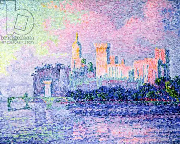 Signac namaloval obraz Chateau des Papes, Avignon v roce 1900. Převládající barvy tohoto obrazu jsou pestrobarevné a jeho formát je na šířku. Rozměr originálu je 73.5x92.5. Umístěním originálu obrazu je Musee dOrsay, Paris, France. Reprodukci tohoto obrazu tiskneme na přání - můžete si zvolit rozměr i provedení reprodukce.