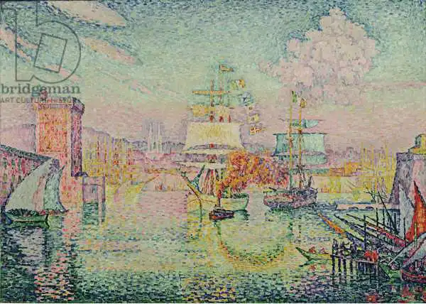 125x135 Signac namaloval obraz Entrance to the Port of Marseille v roce 1918. Převládající barvy tohoto obrazu jsou do zelena a jeho formát je na šířku. Rozměr originálu je 125x135. Umístěním originálu obrazu je Musee Cantini, Marseille, France. Reprodukci tohoto obrazu tiskneme na přání - můžete si zvolit rozměr i provedení reprodukce.