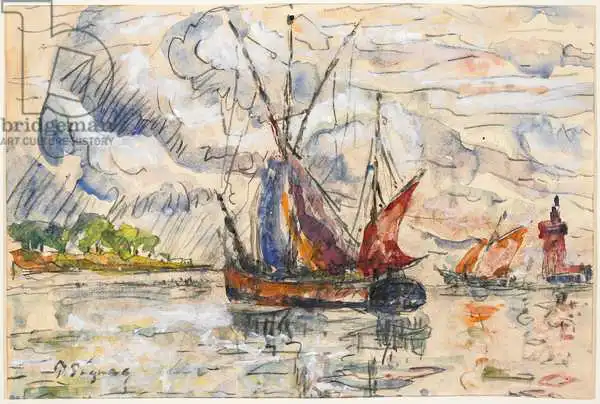Signac namaloval obraz Fishing Boats in La Rochelle v roce 1919. Převládající barvy tohoto obrazu jsou do oranžova a jeho formát je na šířku. Rozměr originálu je 27.3x40.5. Umístěním originálu obrazu je Minneapolis Institute of Arts, MN, USA. Reprodukci tohoto obrazu tiskneme na přání - můžete si zvolit rozměr i provedení reprodukce.