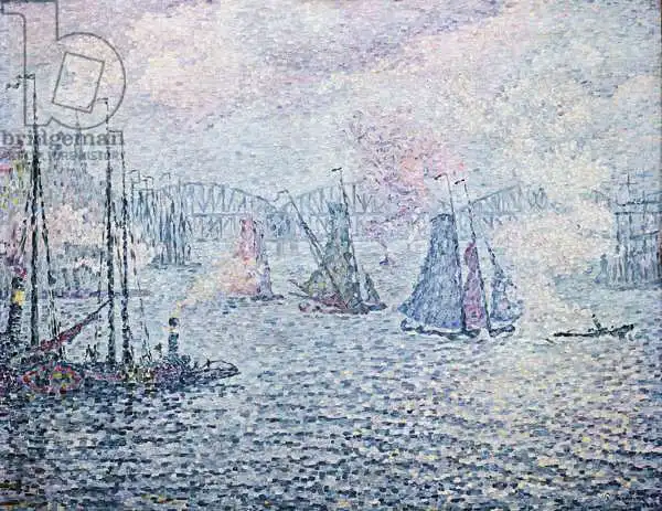 72x92 Signac namaloval obraz Port of Rotterdam, or The Fumes v roce 1906. Převládající barvy tohoto obrazu jsou do modra a jeho formát je na šířku. Rozměr originálu je 72x92. Obraz je umístěn v soukromé sbírce. Reprodukci tohoto obrazu tiskneme na přání - můžete si zvolit rozměr i provedení reprodukce.