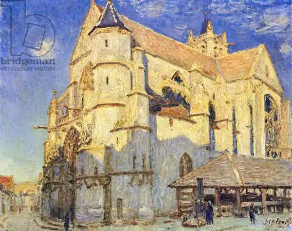 Sisley namaloval obraz Church at Moret, Frosty Weather v roce 1893. Převládající barvy tohoto obrazu jsou do oranžova a jeho formát je na šířku. Rozměr originálu je 50x61.5. Umístěním originálu obrazu je Musee des Beaux-Arts, Rouen, France. Reprodukci tohoto obrazu tiskneme na přání - můžete si zvolit rozměr i provedení reprodukce.