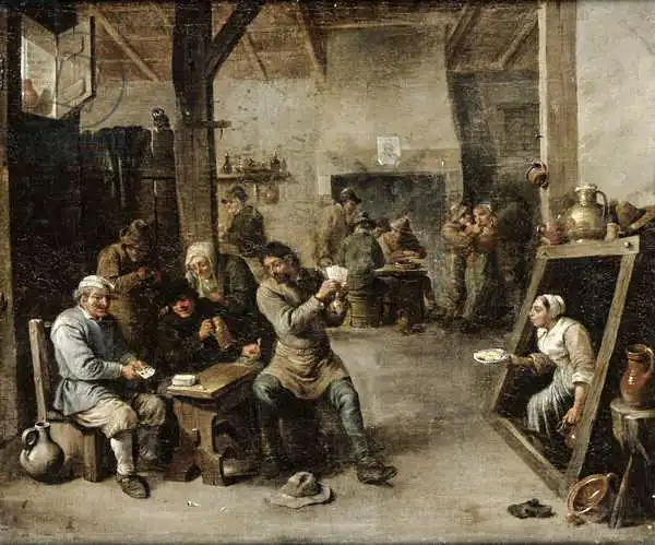 Holandský umělecDavid Teniers (1610-1690) se narodil v Antverpách. Byl ovlivněn Peter Paul Rubensem. Jeho raná tvorba spadá pod cech Sv. Lukáše v Antverpách, kde maloval náboženské motivy. Jeho obrazy vynikají hrou světla a stínů, použitými barvami a realistickým vyobrazením postav. V roce 1644 se Teniers stal předsedou cechu. Zanedlouho byl však pověřen arcivévodou Leopoldem Vilémem aby se umělec staral o jeho rozrůstající sbírku obrazů kterou zachytil na fascinujícím obraze Arcivévody Leopolda Viléma ve své galerii v Bruselu. Pokaždé na něm lze najít nějaký nový detail či zajímavost. Teniers skupoval obrazy italských mistrů, které jsou nyní k vidění v Kunsthistorische Museum.