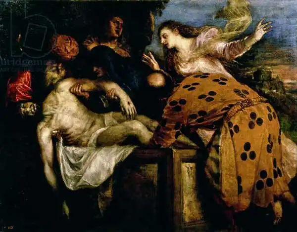 Celým jménem Tiziano Vecelli Da Cadore (1485-1576) pocházel z rodiny právníků a notářů. V devíti letech odjel studovat do tehdejšího centra umění, do Benátek. Setkal se tam nejen s Leonardem da Vincim i Albrechtem Dürerem. Strýc Tiziana podporoval a rozvíjem jeho talent, až jednoho dne byl mladý umělec přijat do dílny Giovanny Belliniho. Jeho jméno se dostávalo více do podvědomí potenciálních zákazníků. Když jeho mistr zemřel, stal se Tizian hlavním benátským malířem. Jeho zákazníci byli benátští dóžové, pro něž maloval nejen portréty (Jacopo Strada). Tizianovy obrazy se staly symbolem luxusu a bohatství. Po korunovaci císaře Karla V., získal rytířský titul. V roce 1542 se na žádost papeže Pavla III. přestěhoval do Říma, kde nahradil Michelangela. Tizian položil základy renesance a inspiroval umělce, jako byly Rembrandt, nebo Rubens.