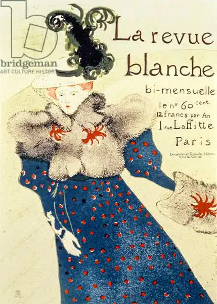 Toulouse-Lautrec namaloval obraz Cover of La Revue Blanche v roce 1895. Převládající barvy tohoto obrazu jsou do modra a jeho formát je na výšku. Obraz je umístěn v soukromé sbírce. Reprodukci tohoto obrazu tiskneme na přání - můžete si zvolit rozměr i provedení reprodukce.