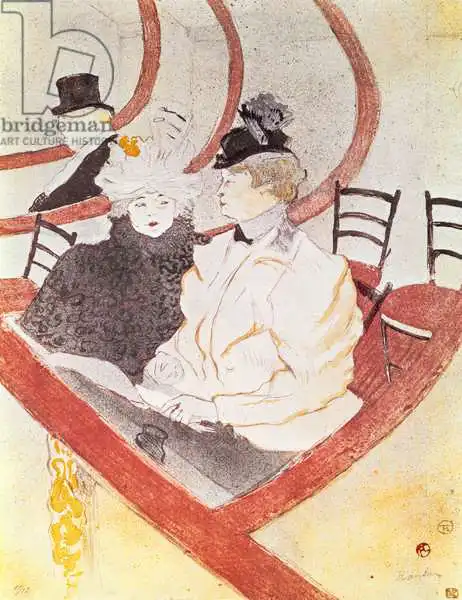 Henri de Toulouse-Lautrec (1864 – 1901). Celým jménem Henri Marie Raymond de Toulouse-Lautrec-Monfa. Francouzský malíř, tiskař a ilustrátor. Jeho dílo zahrnuje jak obrazy, tak stovky plakátů. Je proslulé svou elegancí, provokativností. Spolu se Cézannem, van Goghem a Gauguinem patří k nejznámějším malířům postimpresionismu. Trpěl zdravotními problémy (dokonce je po něm pojmenován jedná vzácná genetická porucha). Deprese a chmury zaháněl alkoholem, na kterém byl závislý. Za dvacet let namaloval 737 pláten, 5084 kreseb a stovky skečí a plakátů. Ovlivnil ho impresionismus – viditelně zejména Manet a Degas. Byl mistrem skupinových maleb z uměleckého prostředí, nočního života, barů a kaváren. Detailně prokresloval výrazy a postoje postav na obrazech. Používal kontur a dlouhých tahů štětce.