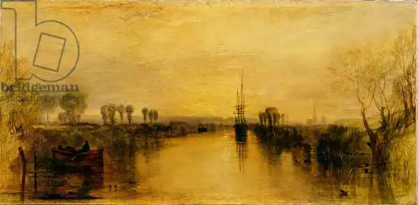 Turner namaloval obraz Chichester Canal v roce 1829. Převládající barvy tohoto obrazu jsou do oranžova a jeho formát je podlouhlý. Rozměr originálu je 63.5x132.1. Umístěním originálu obrazu je Petworth House, Sussex, UK. Reprodukci tohoto obrazu tiskneme na přání - můžete si zvolit rozměr i provedení reprodukce.