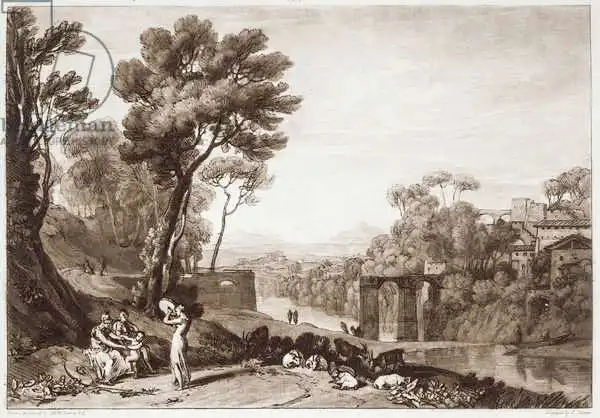 Turner namaloval obraz F.3.I The Woman and the Tambourine, from the Liber Studiorum v roce 1807. Převládající barvy tohoto obrazu jsou Černobílé a jeho formát je na šířku. Rozměr originálu je 20.9x29.2. Umístěním originálu obrazu je Fitzwilliam Museum, University of Cambridge, UK. Reprodukci tohoto obrazu tiskneme na přání - můžete si zvolit rozměr i provedení reprodukce.