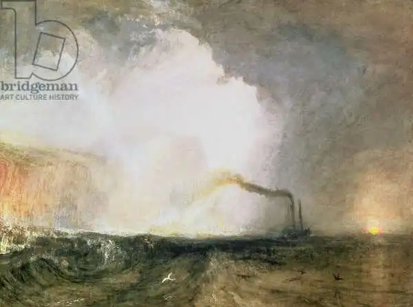 Joseph Mallord William Turner (1775 – 1851). Anglický romantický krajinář. Svým stylem položil základy impresionismu. Ve své době byl považován za kontroverzního umělce, dnes je uznáván pro své pojetí krajinné malby. Pracoval se světlem (býval označován jako „malíř světla“). Mistrně také maloval vodovými barvami. Vyspělou ukázkou jeho stylu, který právě ovlivnil francouzské impresionisty je jeho Déšť, pára, rychlost, na němž pouze pomocí míchání barev naznačil podobu předmětů a děj na obraze. Velmi podobným dílem je také Fighting Temeraire (bitevní loď, která se proslavila v bitvě u Trafalgaru) z roku 1839, na němž proslulou loď táhne parník do doků k rozebrání.