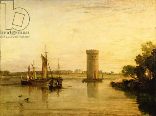 Turner namaloval obraz Tabley, the Seat of Sir J.F. Leicester, Bart.: Calm Morning v roce 1809. Převládající barvy tohoto obrazu jsou do oranžova a jeho formát je na šířku. Rozměr originálu je 91.4x121.9. Umístěním originálu obrazu je Petworth House, Sussex, UK. Reprodukci tohoto obrazu tiskneme na přání - můžete si zvolit rozměr i provedení reprodukce.