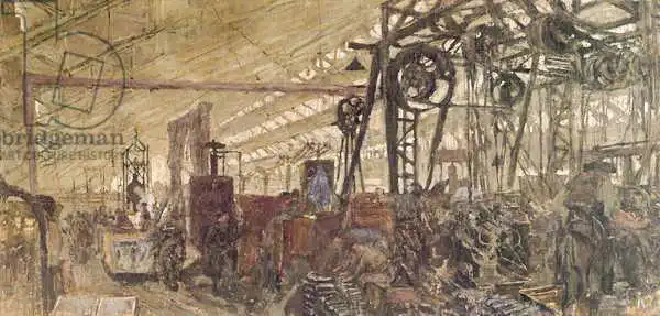Vuillard namaloval obraz Interior of a Munitions Factory v roce 1916-17. Převládající barvy tohoto obrazu jsou do zelena a jeho formát je podlouhlý. Rozměr originálu je 75x154. Umístěním originálu obrazu je Musee dArt Moderne, Troyes, France. Reprodukci tohoto obrazu tiskneme na přání - můžete si zvolit rozměr i provedení reprodukce.