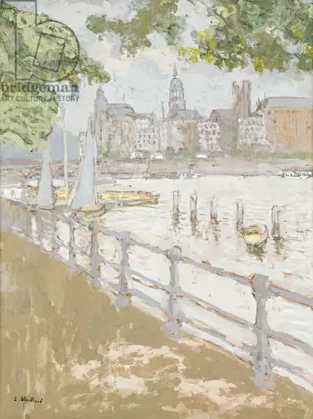 Vuillard namaloval obraz View of the Binnenalster v roce 1913. Převládající barvy tohoto obrazu jsou do hněda a jeho formát je na výšku. Rozměr originálu je 74x55.2. Umístěním originálu obrazu je Hamburger Kunsthalle, Hamburg, Germany. Reprodukci tohoto obrazu tiskneme na přání - můžete si zvolit rozměr i provedení reprodukce.